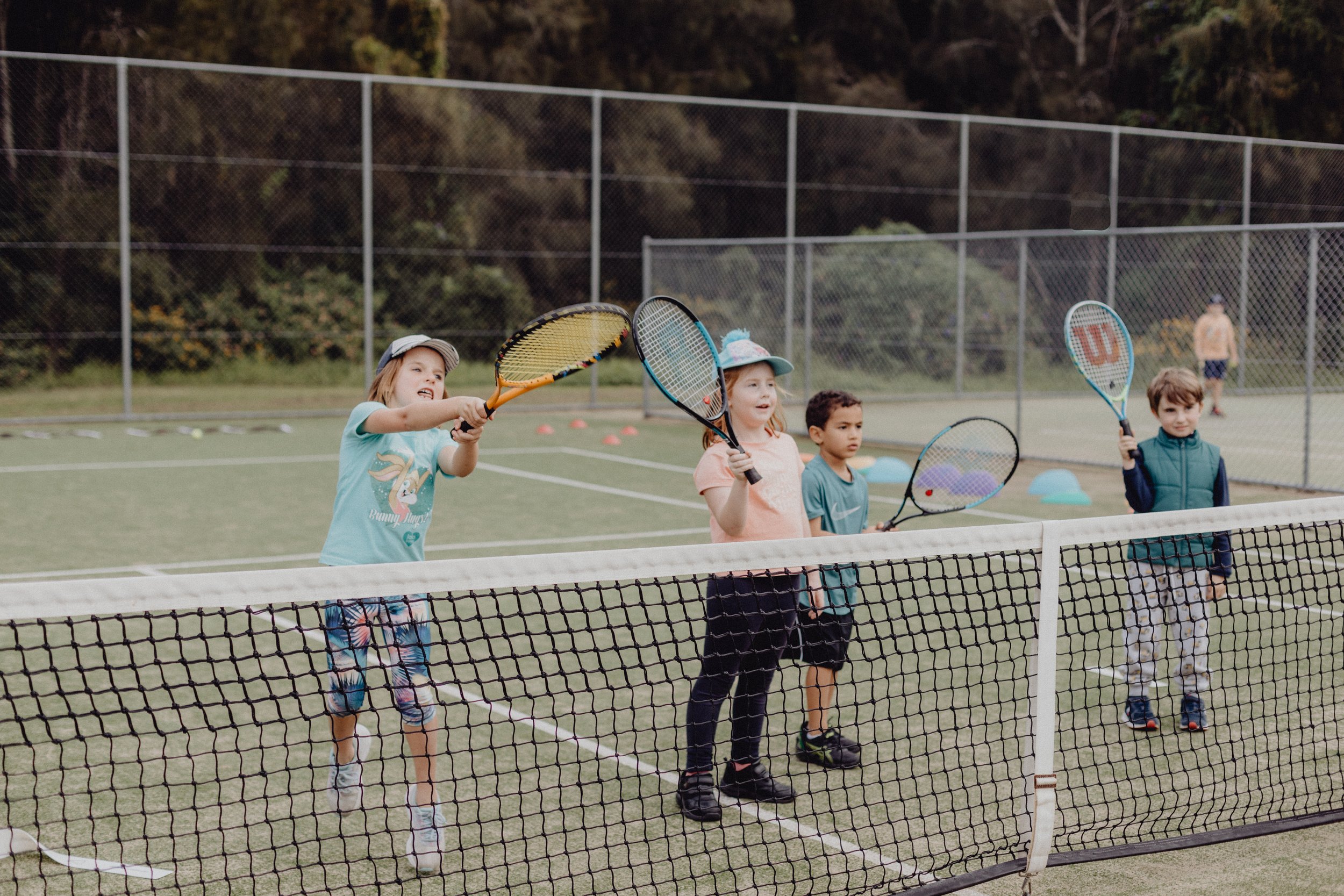 The Blue Ball stage is an introduction into tennis basics while further developing your childs’ fundamental perceptual motor skills and social development. Students will play with modified equipment, including larger low compression balls, mini nets, modified racquets/nets to encourage sensory and motor development such as coordination, balance and strength all in a fun and engaging environment.